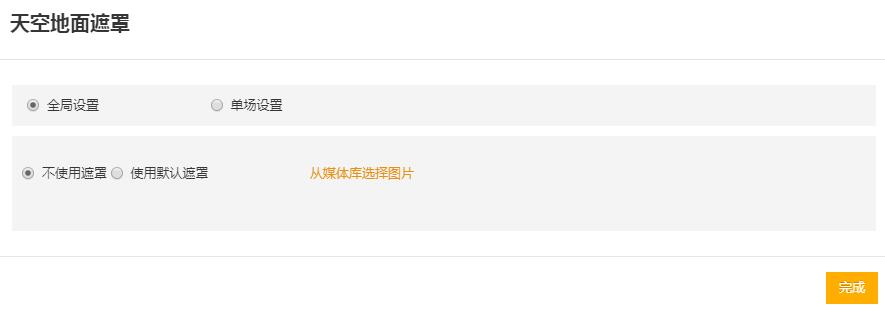 遮罩:遮罩分為“天空遮罩”和“地面遮罩”,天空遮罩顯示在場景的頂部,地面遮罩顯示在場景的底部。(默認遮罩圖為720云圖logo,也可以自定義圖片)